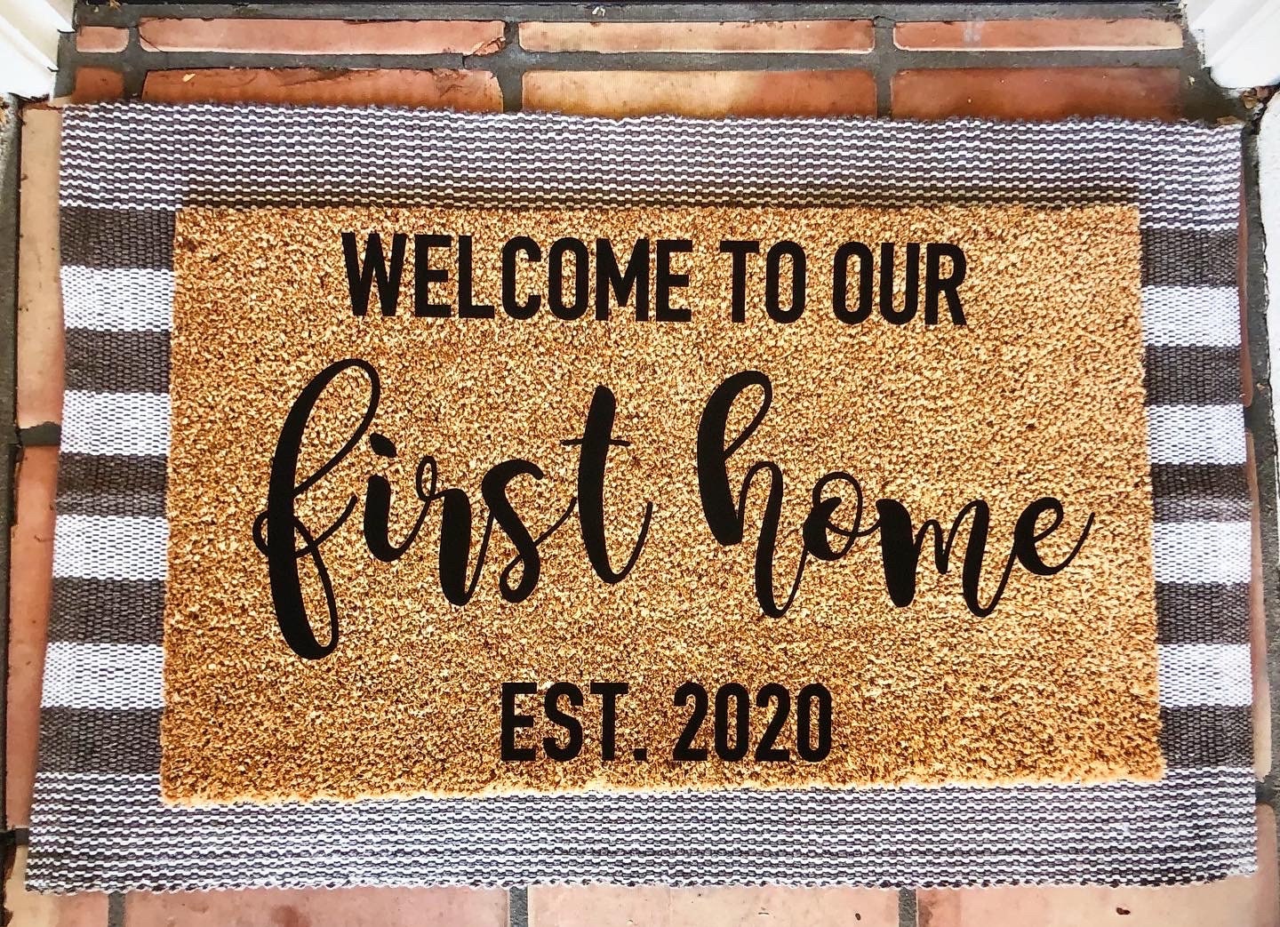 Welcome to our first home doormat, new home doormat, realtor gift, closing gift, new home buyer