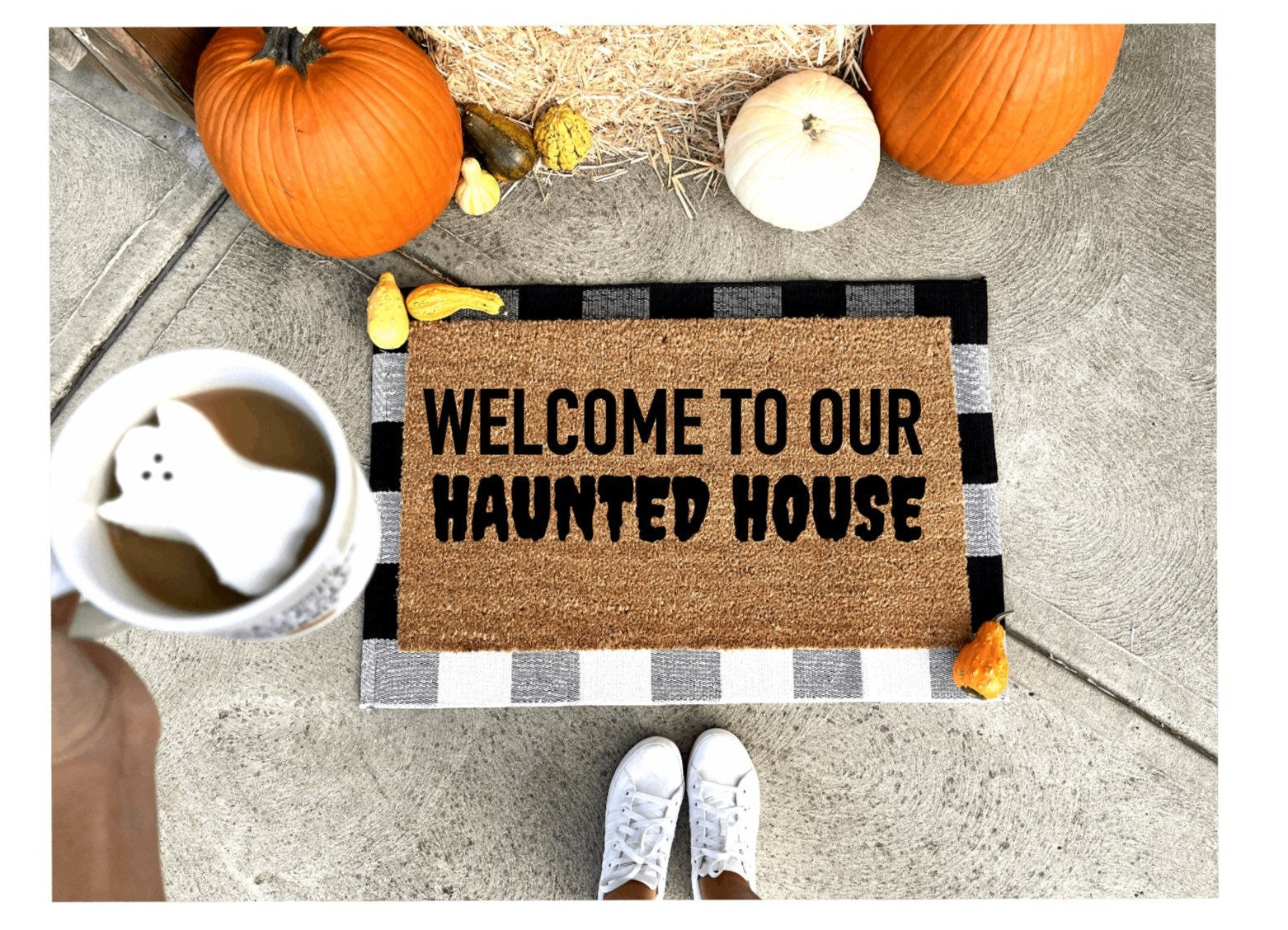 Welcome to our haunted house doormat, funny doormat, witch doormat, Halloween doormat, fall doormat
