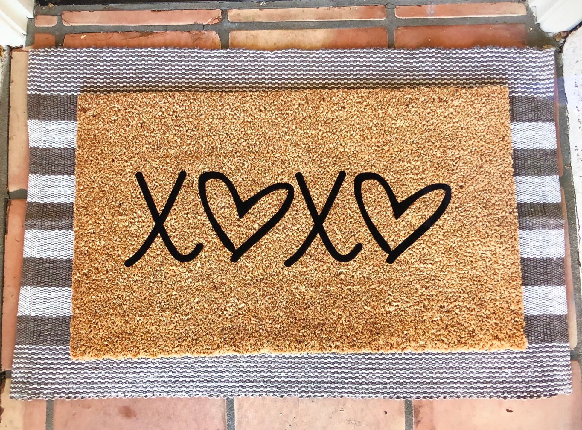 xoxo heart doormat, valentines day, cute doormat, valentines day mat, valentine, heart doormat, love doormat